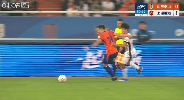 04月17日讯 泰山vs海港上半场补时阶段,杨希人球分过被阿尔瓦罗拉倒,裁判 向阿尔瓦罗出示警告 。