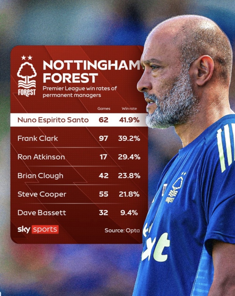 9月9日讯 诺丁汉丛林官宣努诺下课,把柄数据统计努诺是丛林队史英超胜率最高的主帅。