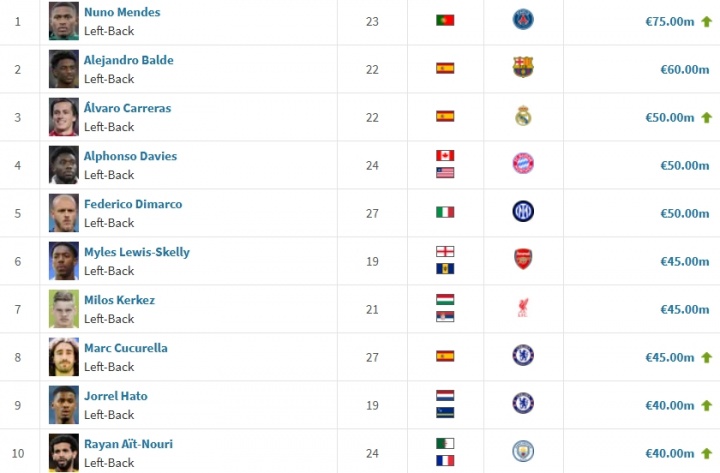 库库雷利亚现年27岁,他2022年从布莱顿加盟切尔西,转会费6530万欧,他的巅峰身价是在公告加盟切尔西时,身价达到5500万欧。现在,他在寰宇左后卫身价榜中排行第六。