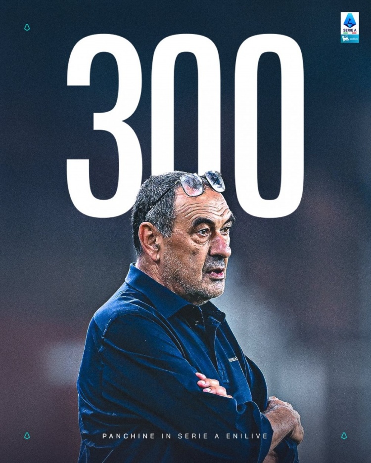 意甲官方社媒晒出萨里海报,道喜萨里捏教意甲300场里程碑。