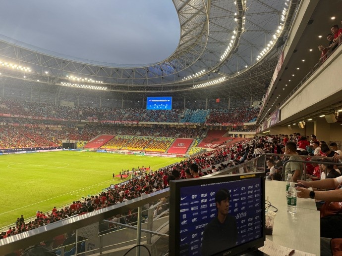 黄健翔在个东谈主微博写谈:成齐蓉城x上海海港。第一次来凤凰山清爽场解释。第N次来成齐解释比赛。解释席放在这个位置的球场,个东谈主还是第一次遭受,视线倒是可以,体验很独有。球场很漂亮!