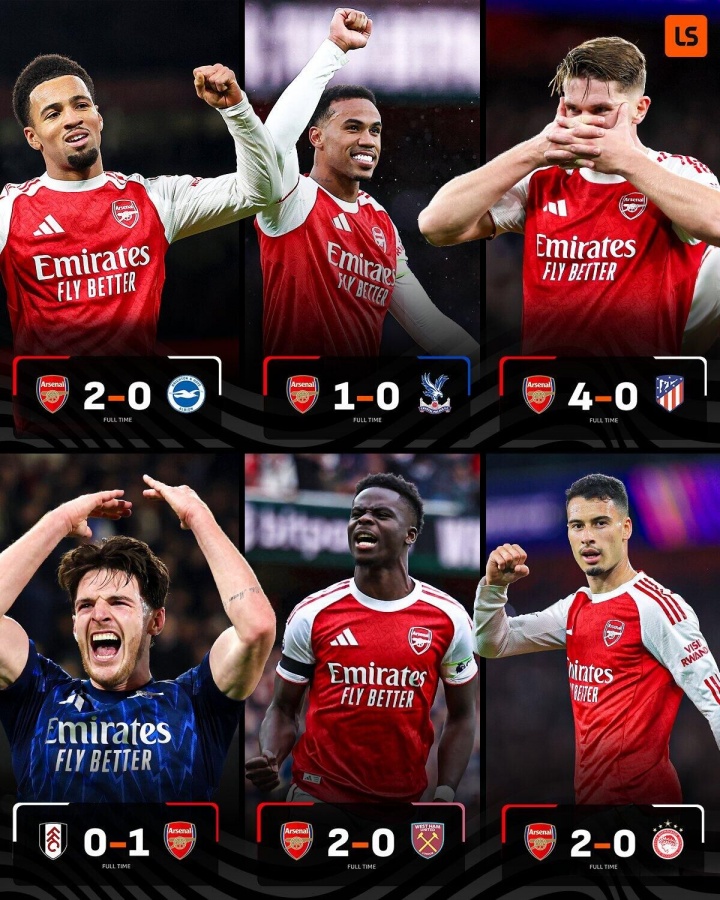 阿森纳本赛季战绩彪悍,他们仍是获得了各项赛事的8连胜,更强的是,在10月份的6场比赛中,阿森纳1球未丢。