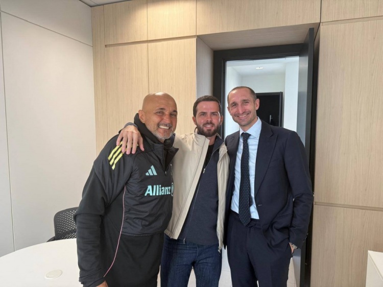 今天他回到尤文图斯的测验基地,并获赠一件5号球衣,还与斯帕莱蒂和基耶利尼合影。