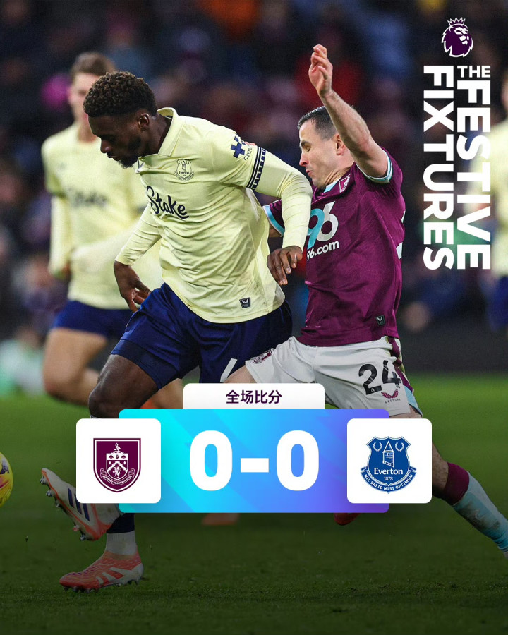 伯恩利0-0埃弗顿