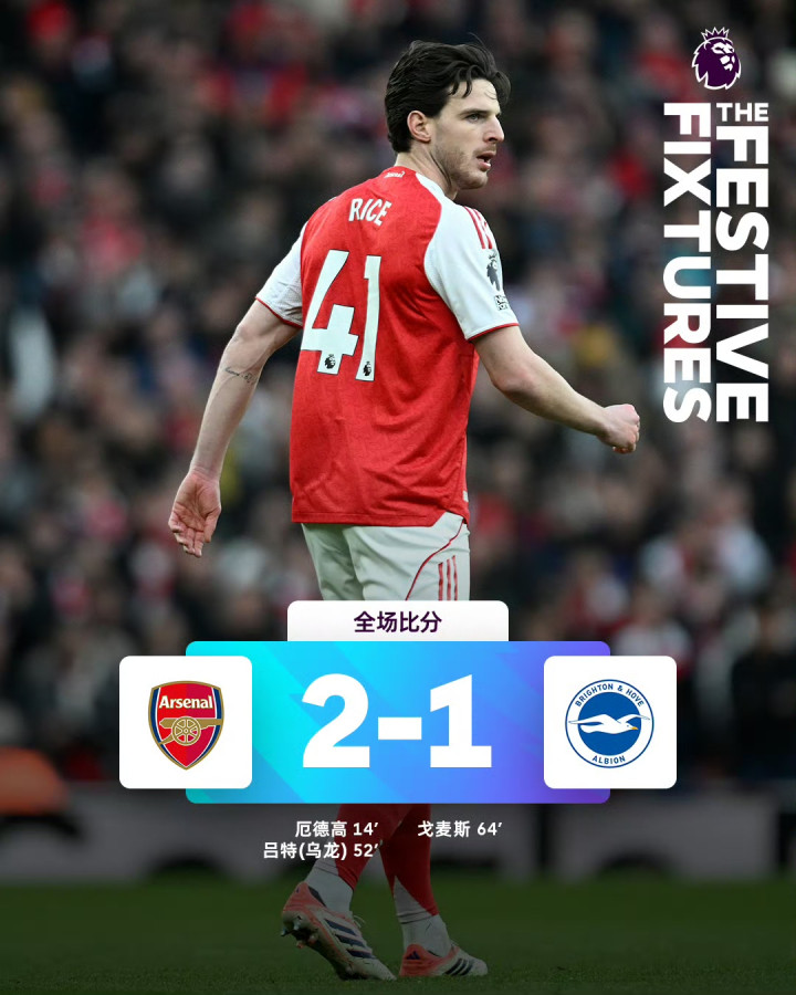 阿森纳2-1布莱顿