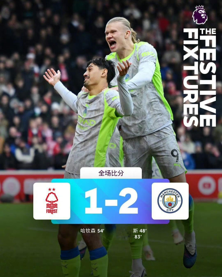 第83分钟,曼城角球政策见效,格瓦迪奥尔头球回作念,谢尔基迎球怒射破门,师法哈兰德象征性庆祝行为,曼城2-1再次率先。最终,曼城凭借谢尔基的一传一射,客场2-1力克诺丁汉丛林。