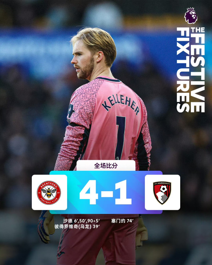 布伦特福德4-1伯恩茅斯