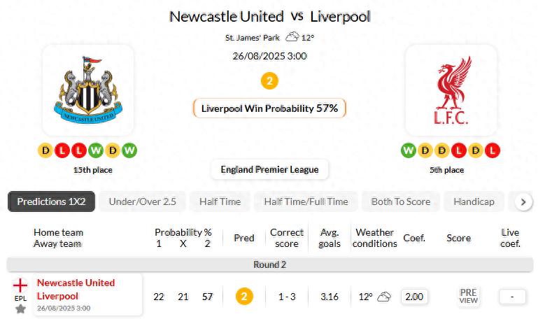 Liverpool have managed to score at least two goals in their 6 most recent clashes with Newcastle United in Premier League