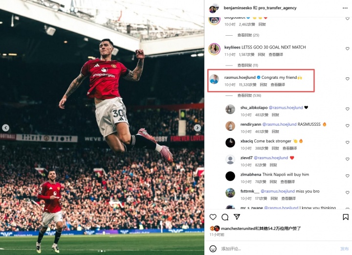 赛后,这位红魔夏日新援在Instagram发文庆祝进球和见效,舍什科写说念:“何等好意思好的嗅觉!在斯特雷特福德看台前进球并拿下三分,让咱们再接再厉,在这个基础上连续前进,渴慕更多!”