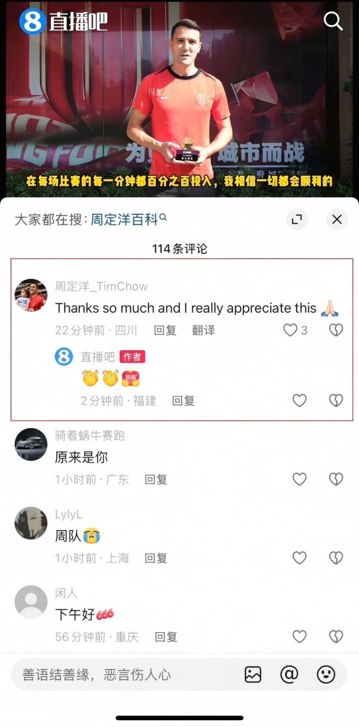 10月17日讯 成王人蓉城队长周定洋当选中超第25轮最好,小吧本次受奖特意制作了他心爱的漫画东谈主物海报,算作礼物送给他。周定洋也通过社媒感谢和吧友们的复旧,他评述谈:终点感谢!