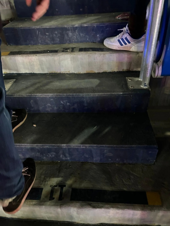 巴萨球迷审视到的另一个问题是“进口处的台阶畸形抵抗整 ”,如下图所示。乍一看,有些台阶的宽度和间距似乎不相同,不外这些问题齐不错贬责。